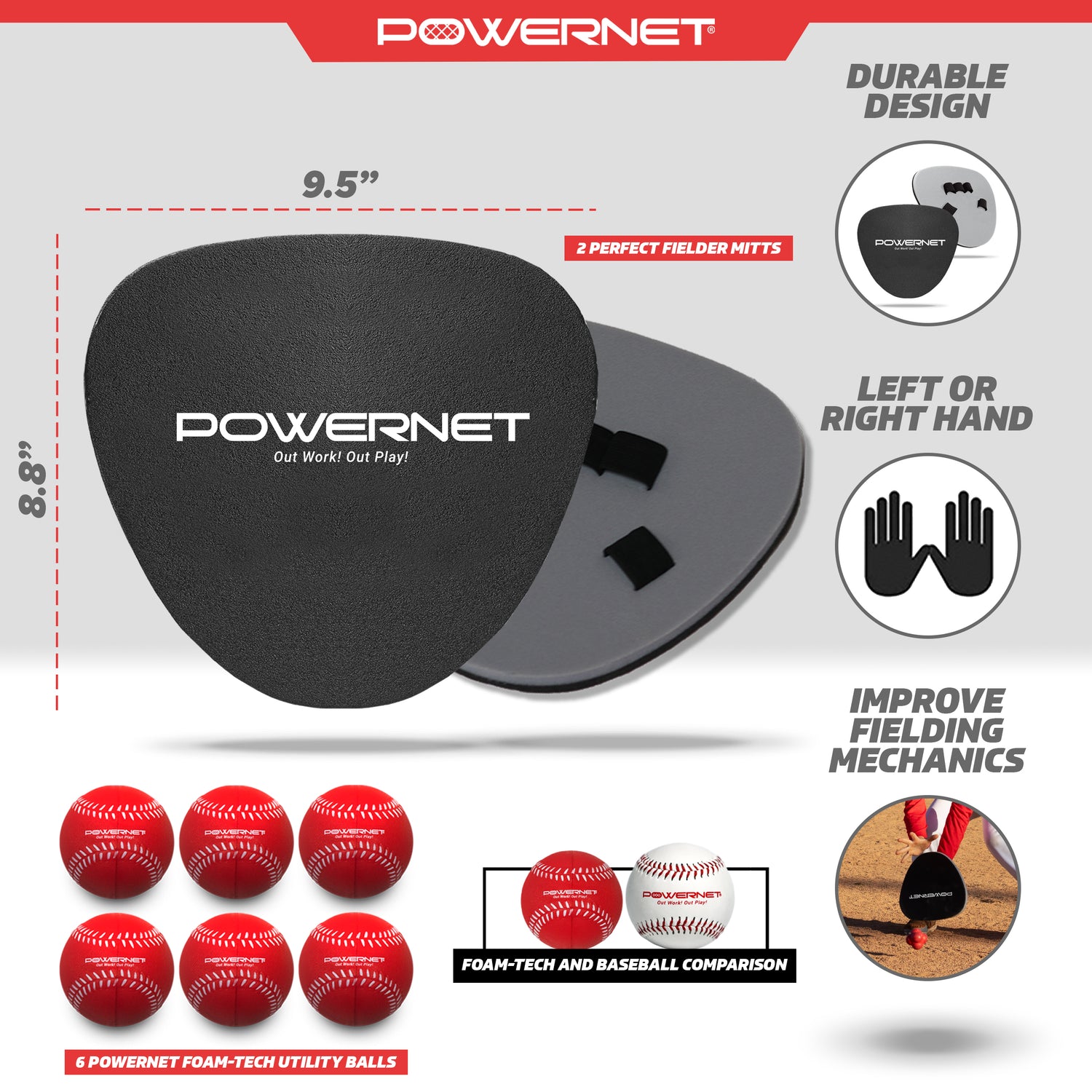 - 2 PERFECT FIELDERS AND 6 FOAM TECH TRAINING BALLS: This fielding bundle includes two Perfect Fielder mitts and six PowerNet Foam Tech Utility Balls for training. Use the Perfect Fielder with the training balls to mechanics to all ages