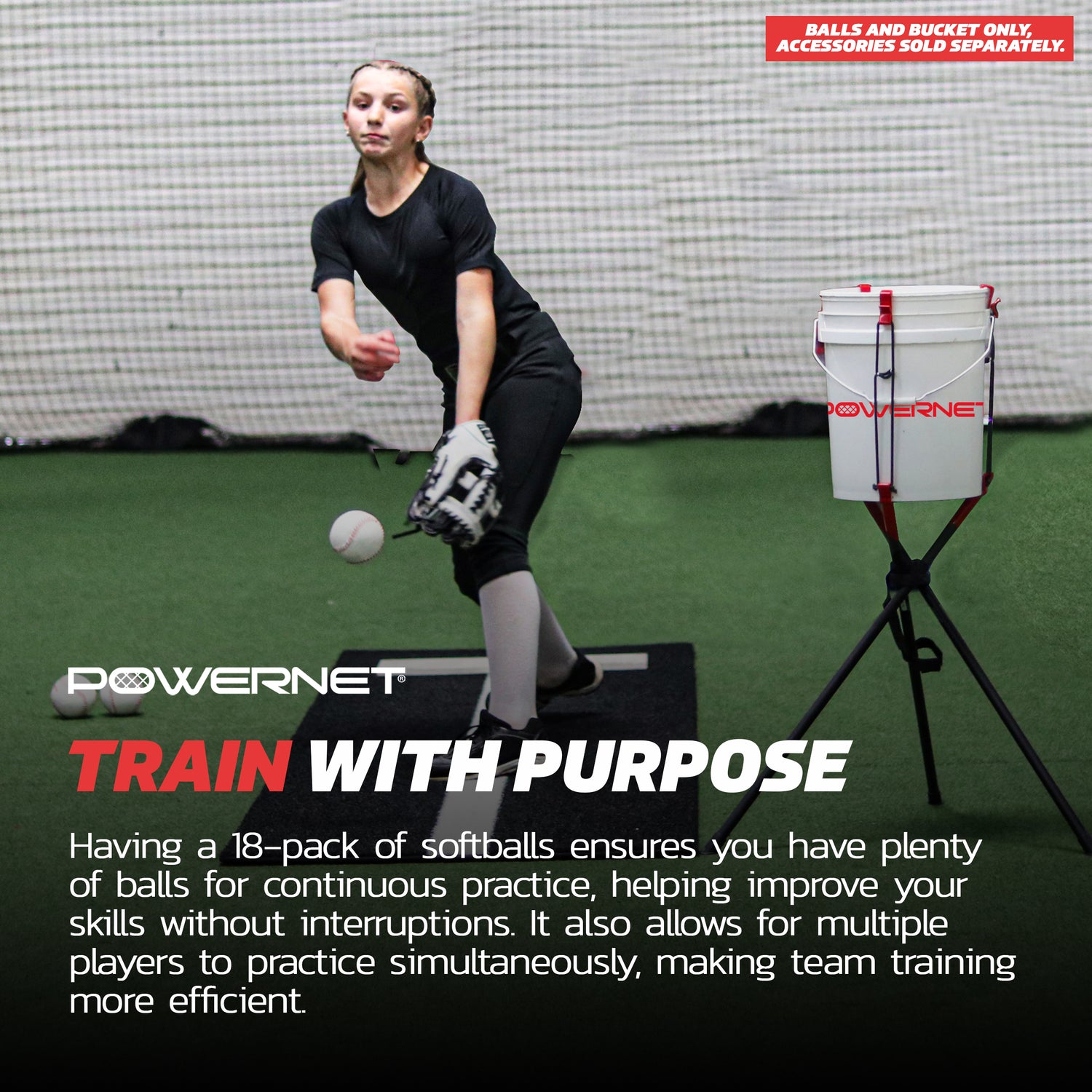- SOLO OR TEAM TRAINING: The 18 pack of softballs can be used for solo training with a coach or during team practice. Add the bundle to your batting practice equipment