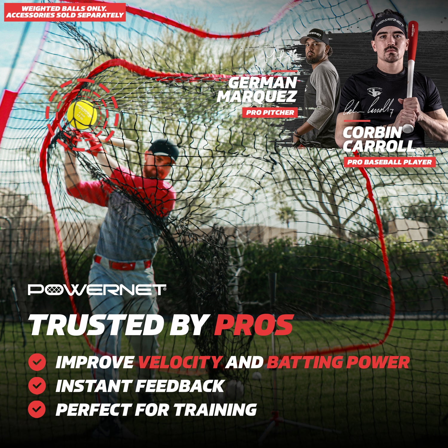 - TRUSTED BY PRO ATHLETES: Train and play like Corbin Carroll and German Marquez, professional baseball players, and elevate your game using PowerNet's professional gear