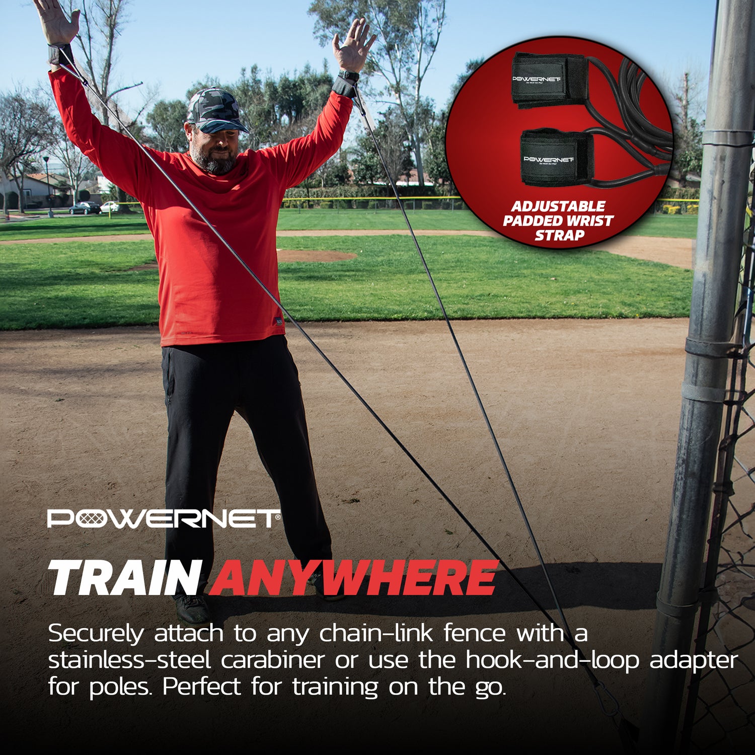 - TRAIN ANYWHERE: The resistance band features a stainless-steel carabiner designed for quick and secure connection to any chain-link fence. A hook-and-loop adapter is included for easy attachment to a pole when a chain-link fence is unavailable, so you can train on-the-go