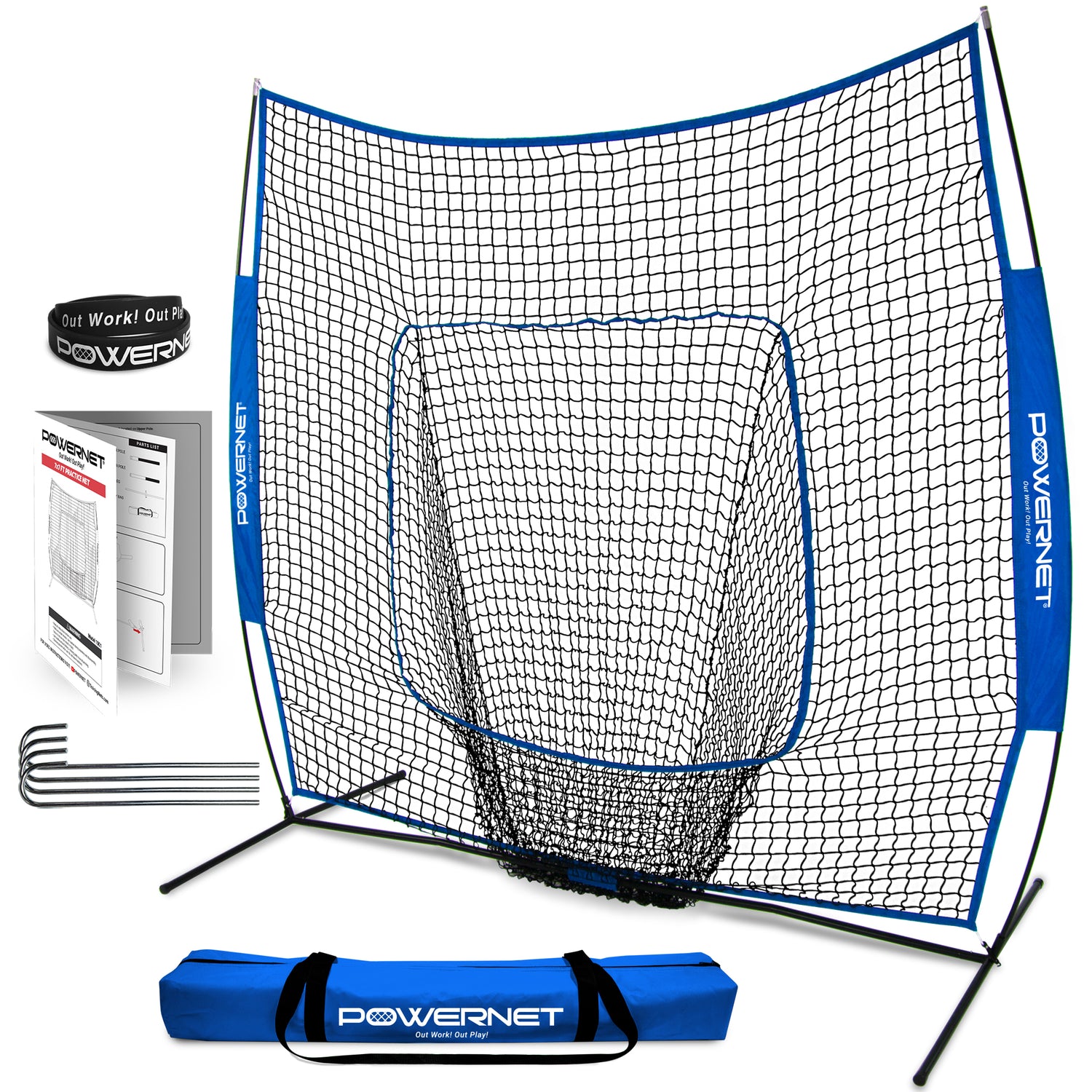 - DURABLE: Our 7 by 7 baseball nets for batting are designed to take the abuse of the hardest hits and throws. The steel frame and flexible fiberglass bow poles provide a steady base for our knotless polyester net