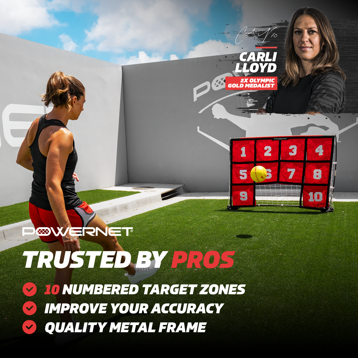 - TRUSTED BY PRO ATHLETES: Train and play like Carli Lloyd, 2x Olympic Gold Medalist, and elevate your game using PowerNet's professional gear