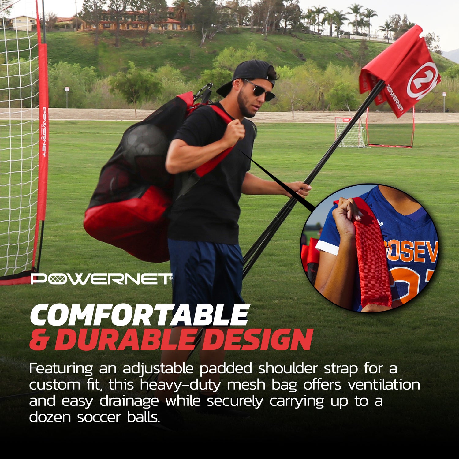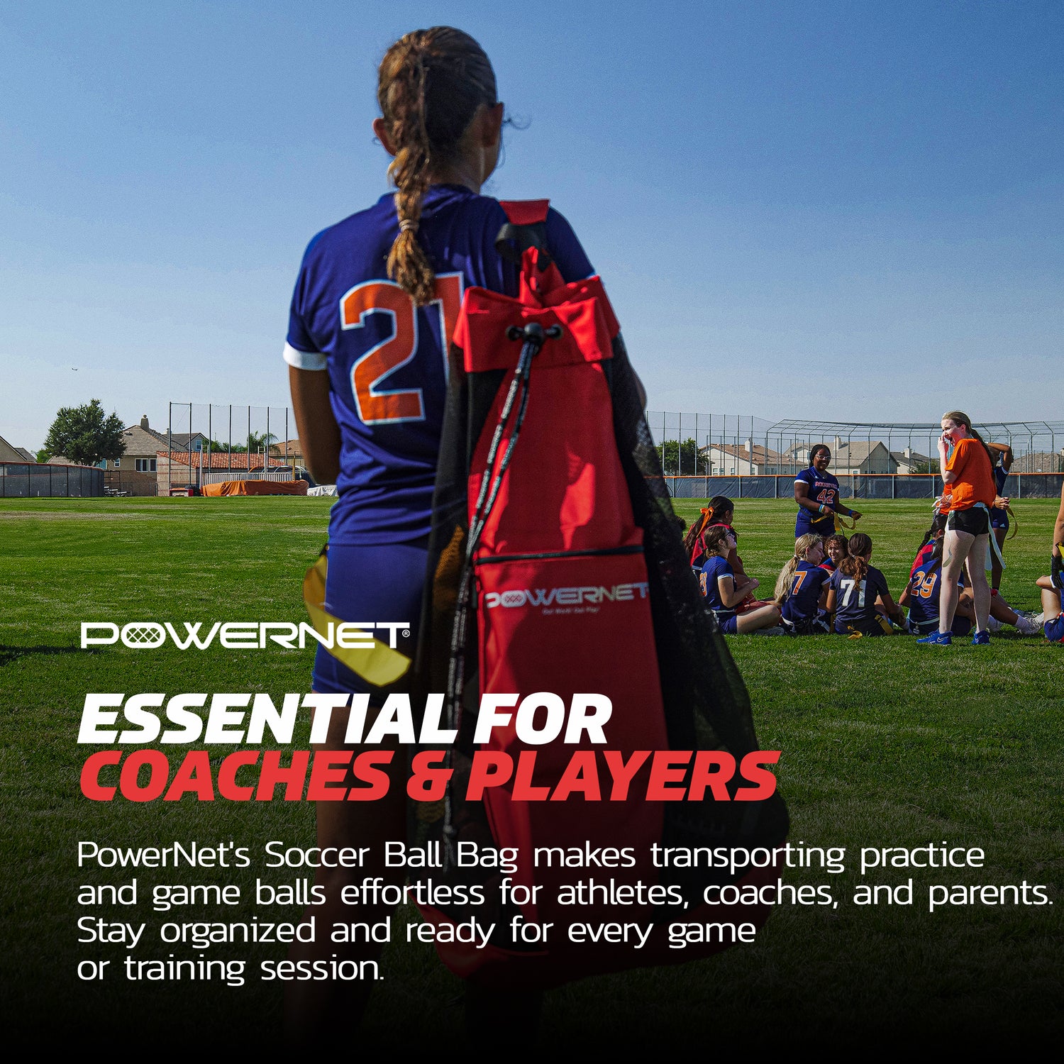 - COACHING ESSENTIAL: PowerNet's Soccer Ball Bag is the perfect ball bag for athletes, coaches and parents to easily transport practice and game balls to and from the field or court. The organized ball carrier is a great coaching tool to make bringing gear to practice efficient