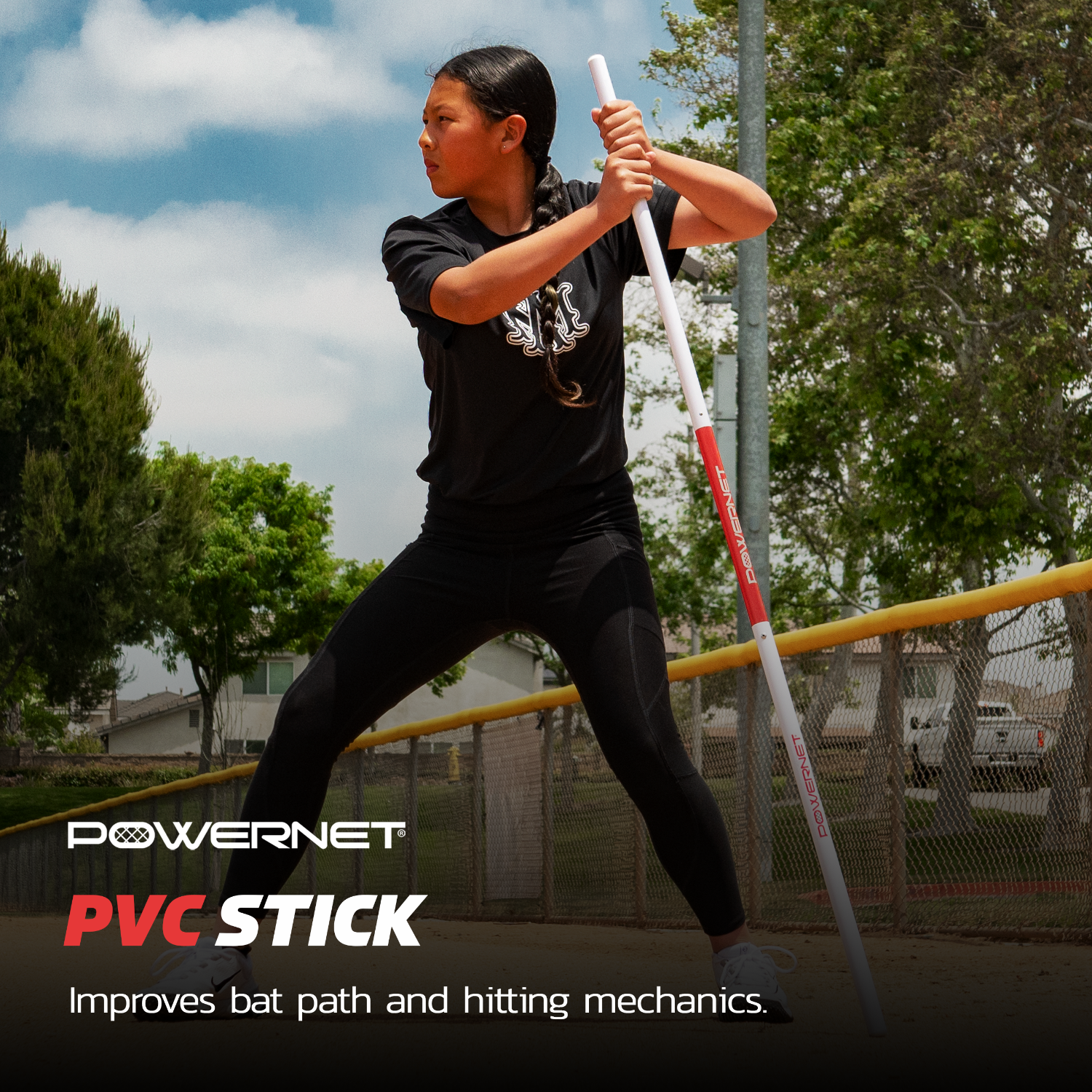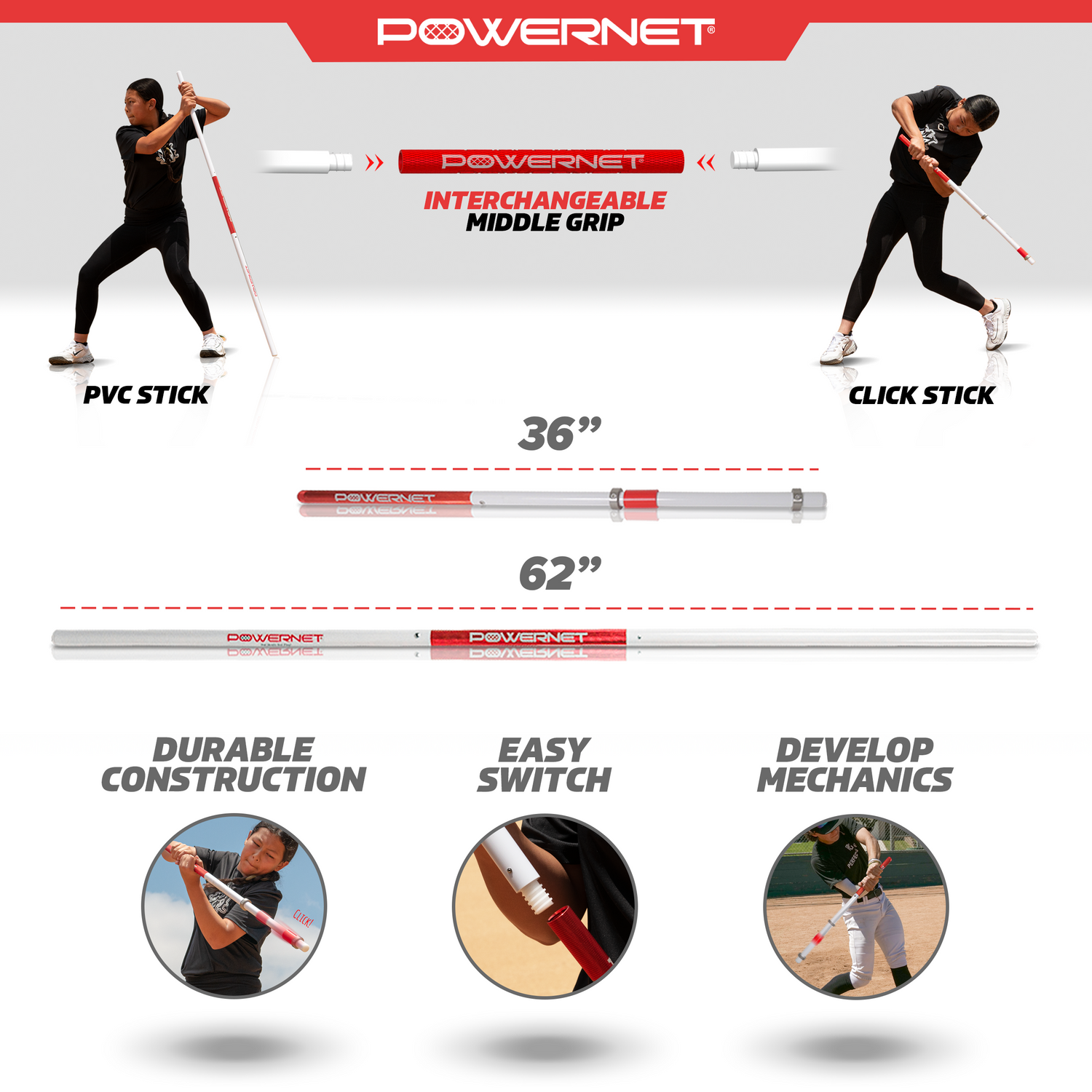 Boost your swing with the PowerNet Combo PVC/Click Stick Bat! Feel the click for perfect mechanics and generate power like never before with this lightweight, versatile tool!