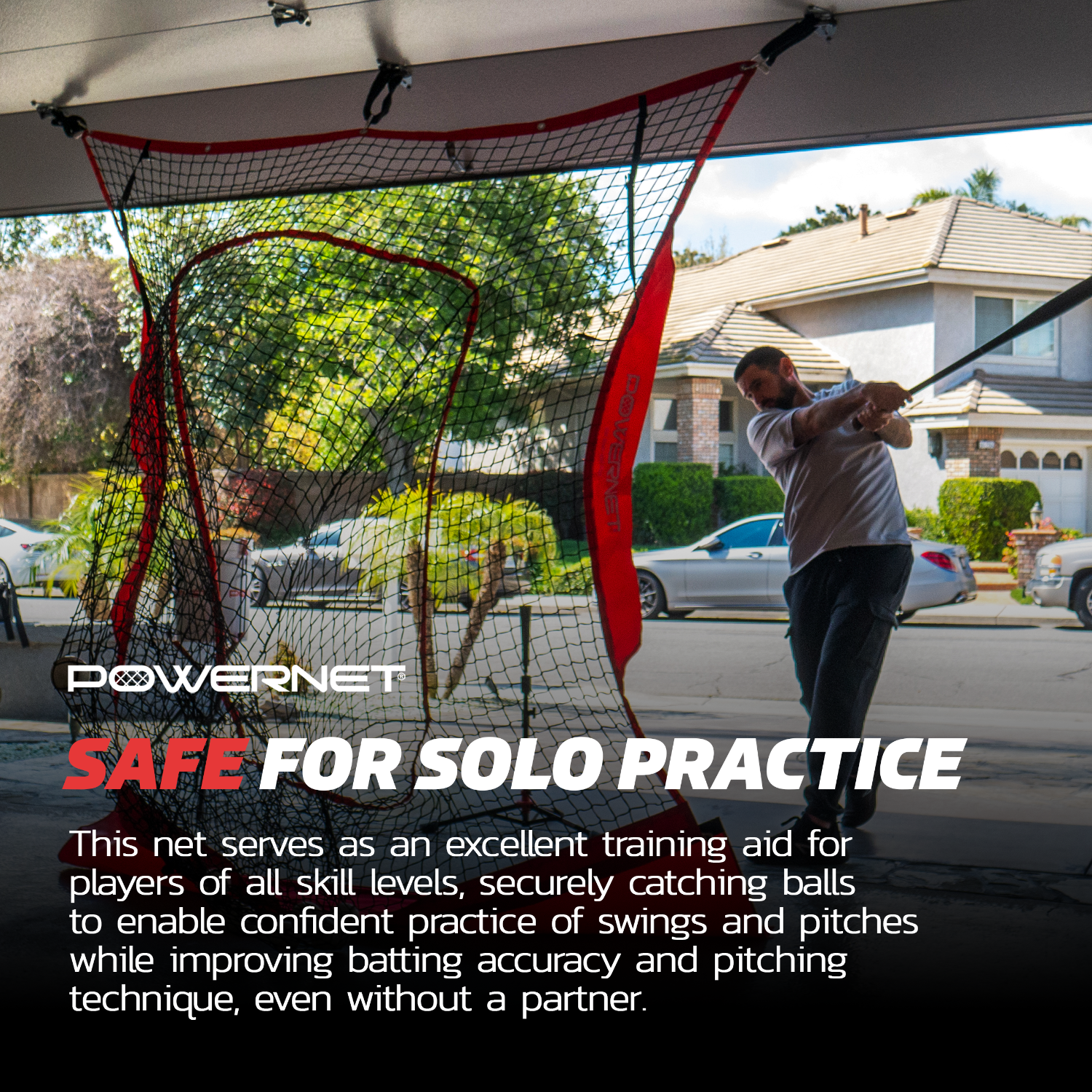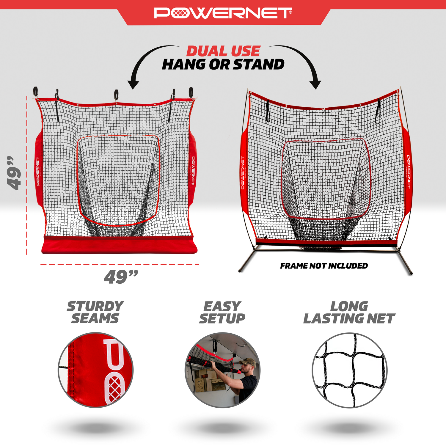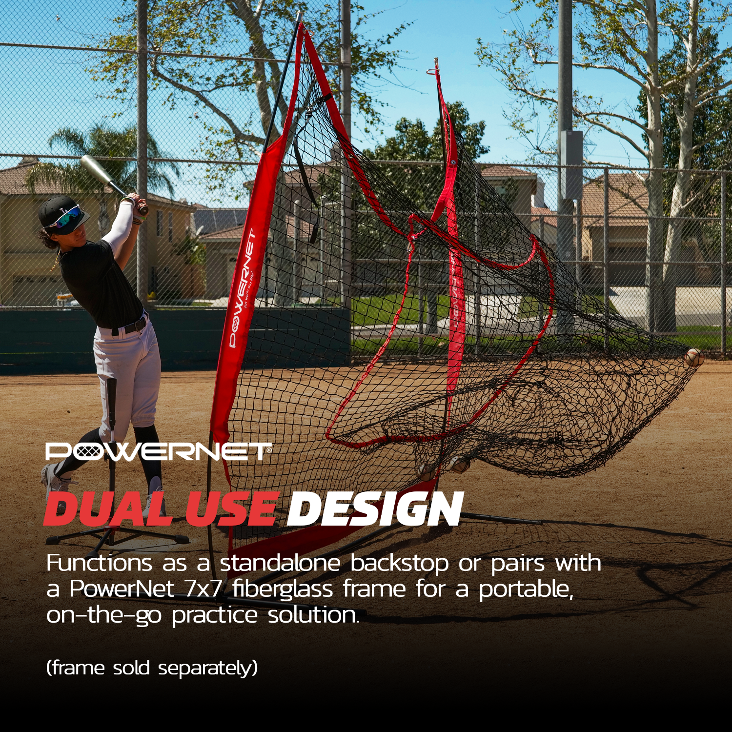 - DUAL USE TRAINING NET: Use this 7x7-foot net as a standalone backstop by hanging it on your garage door for quick and convenient at-home training sessions, or attach it to a PowerNet 7x7 fiberglass frame for a portable baseball practice equipment solution you can take to the field. Frame sold separately