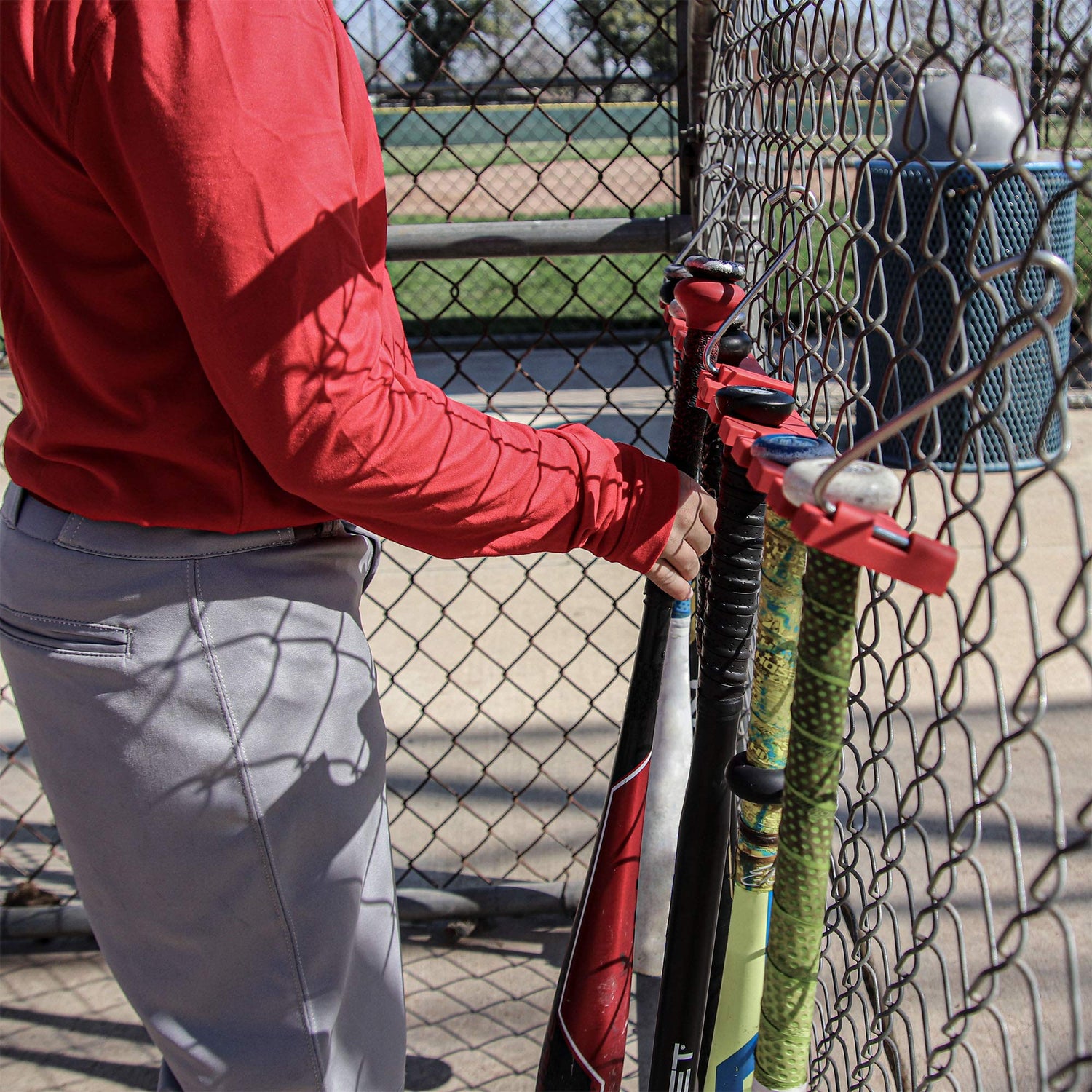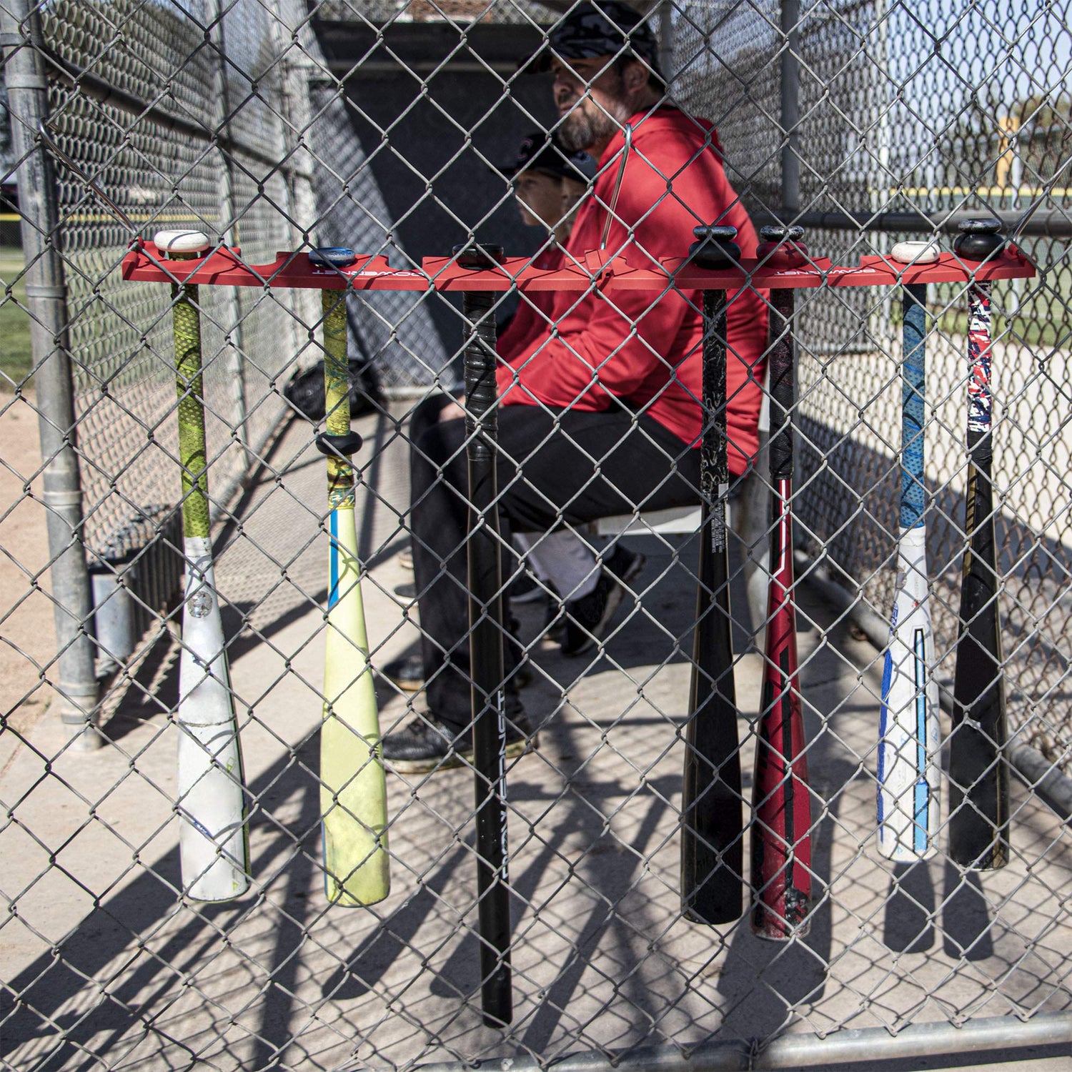 - DUGOUT ORGANIZER; Bat holder great for any baseball or softball team; Keeps bats off the ground and helps protect them from getting dented from other metal bat racks; Makes a great addition to any coach or manager's team equipment