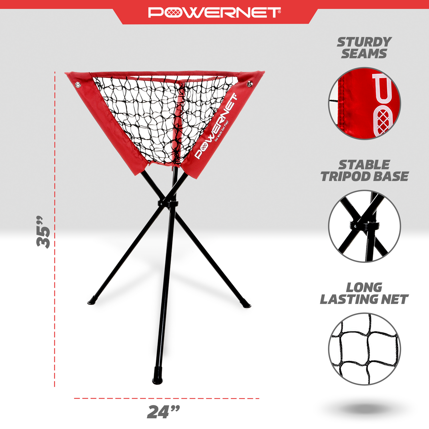 - TRIPOD DESIGN: The PowerNet Ball Caddy stands 35" tall, providing easy access to balls without the need to bend over, saving your back during long practice sessions. The stable tripod design ensures a small footprint, and it conveniently collapses for effortless transport and storage