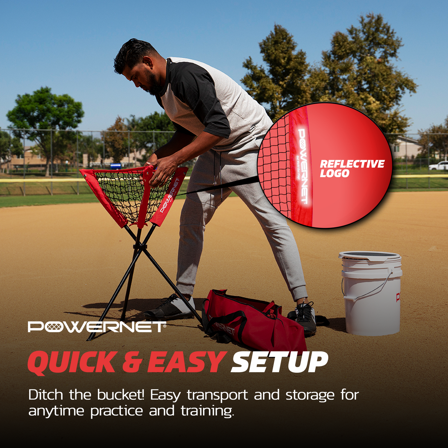 The PowerNet Ball Caddy holds 60 baseballs or 30 softballs, making it perfect for on-the-go training. Lightweight and collapsible, it’s a must-have for any coach or player!