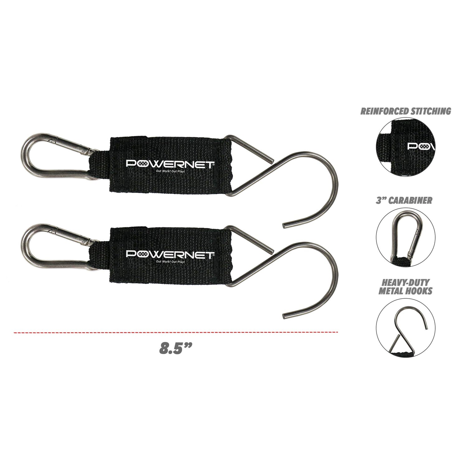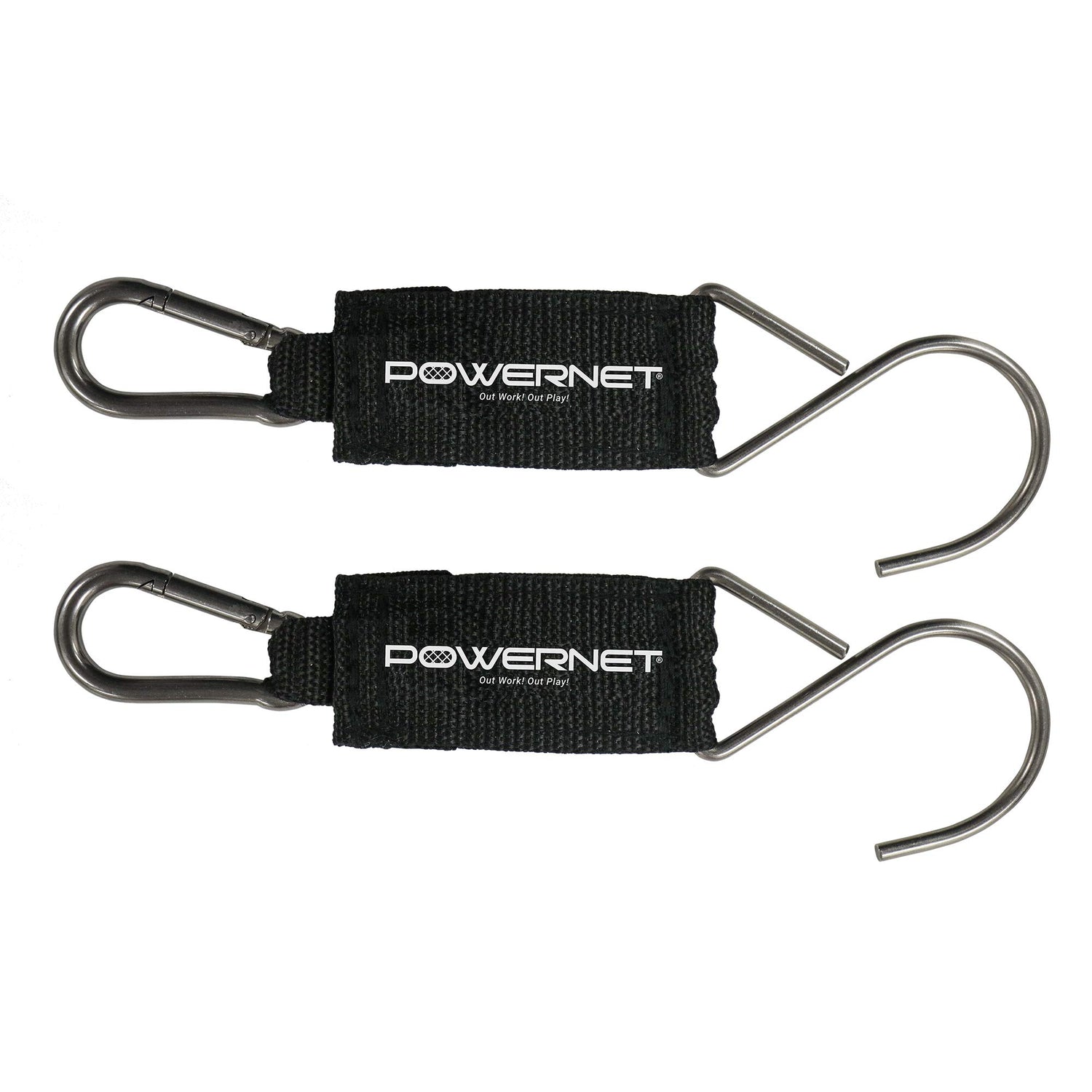 - DURABLE: Each PowerNet Fence Hook has a 3-inch stainless steel carabiner on one end and a stainless steel hook on the other end. The heavy-duty canvas strip has reinforced stitching for durability. Set includes two PowerNet Fence Hooks