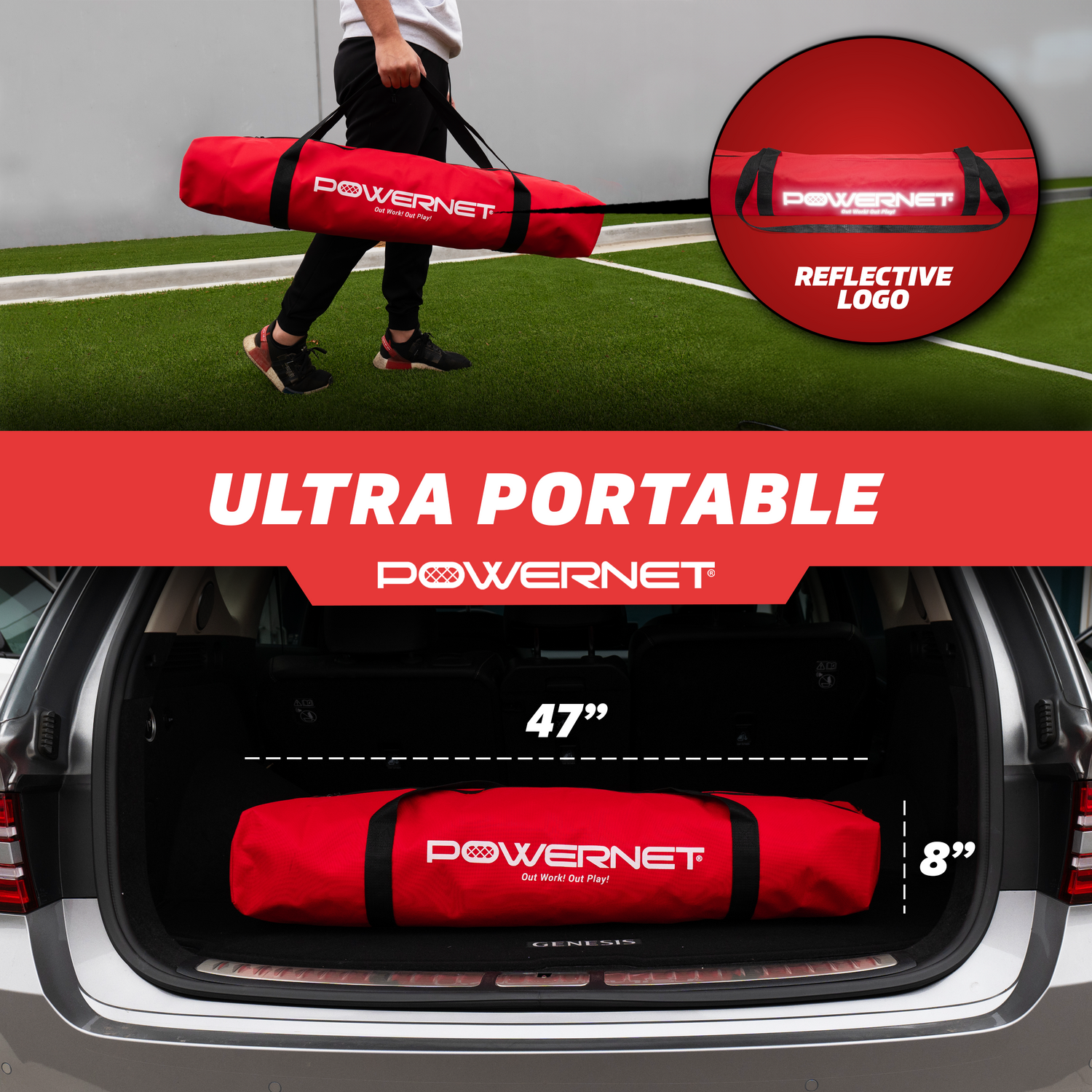 - CARRY BAG: The collapsible training goal folds quickly and easily for instant setup and easy portability. Store in the carrying bag for easy long-term storage and transport in almost any vehicle