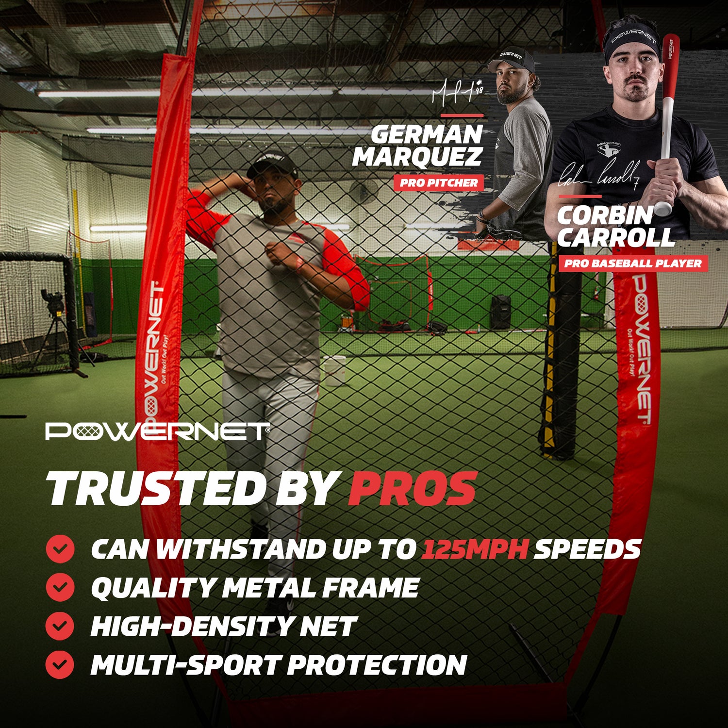 - TRUSTED BY PRO ATHLETES: Train and play like Corbin Carroll and German Marquez, professional baseball players, and elevate your game using PowerNet's professional gear