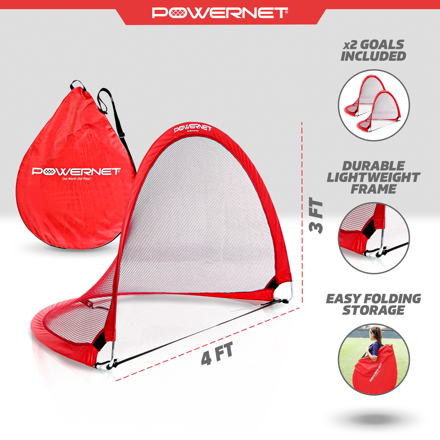 - 2 ROUND SOCCER GOALS: The Powernet Portable Soccer Goal Net is a versatile agility training equipment and an essential addition to coaching soccer gear for girls and boys. Add it to your playground sets for backyard games and enjoying sports at home