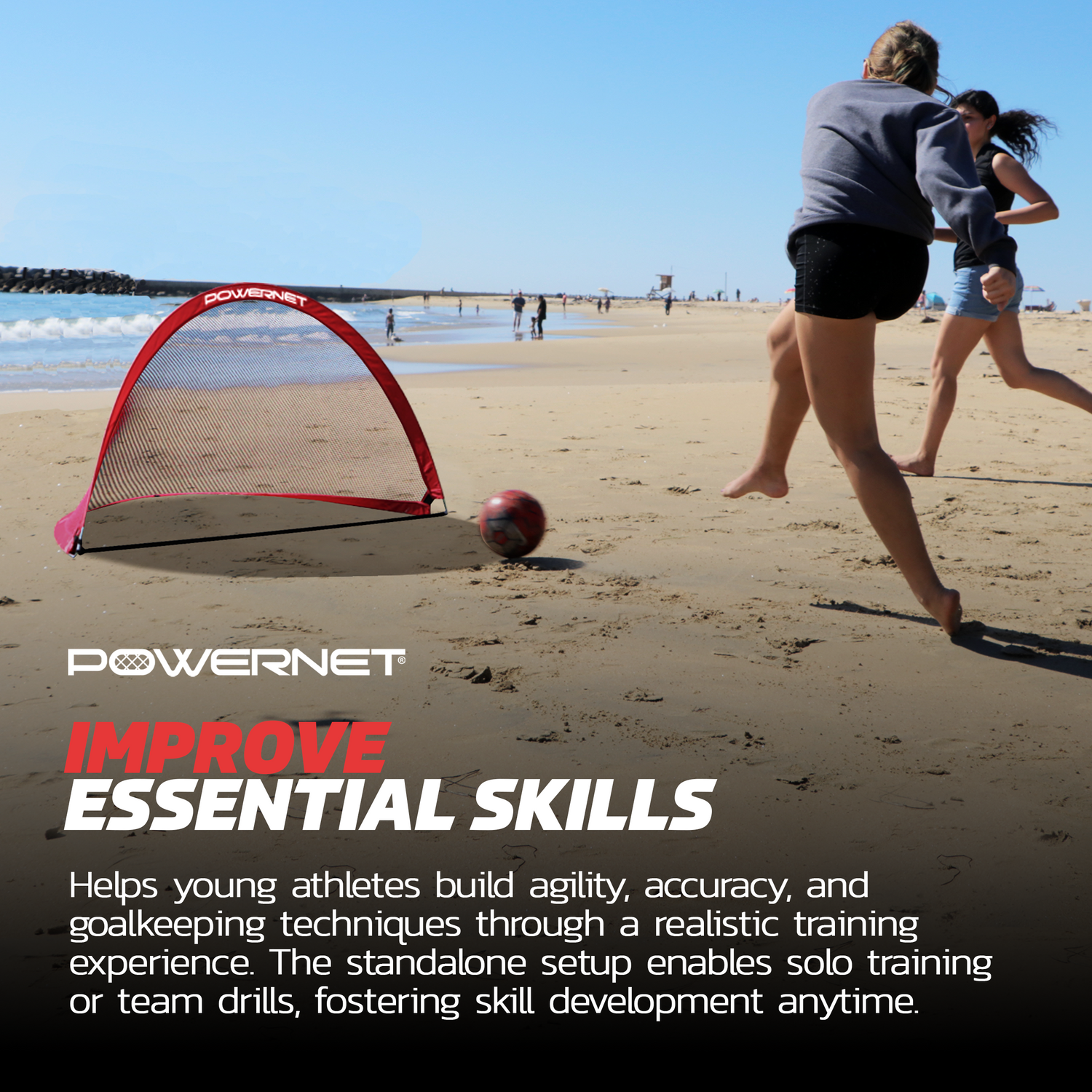 - MIDSIZE NET FOR YOUNG GOALIES: These soccer goals allow kids to play like real goalkeepers. Athletes can develop basic essential skills in a more dynamic and engaging way with the ultra portable soccer goals