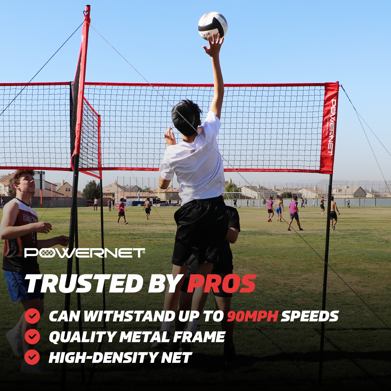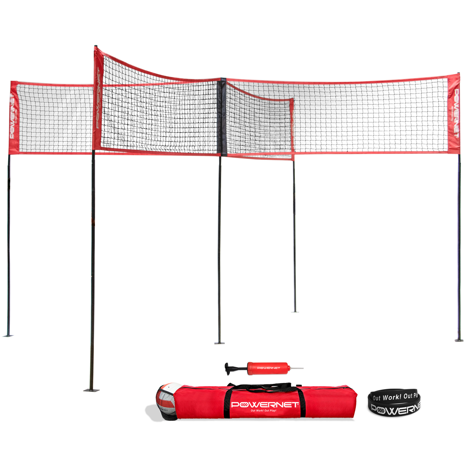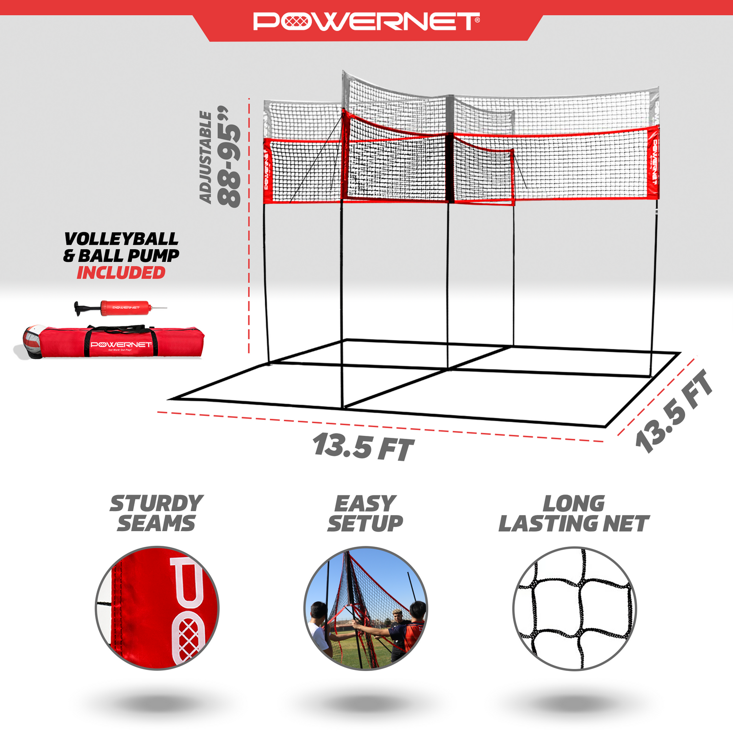 - DURABLE: Double stitched seams and reliable PowerNet durability means you can stay focused on having a worry free good time. Whether you're using the Four Square Volleyball Net for fun or as volleyball training equipment, you'll enjoy the adjustable strong net