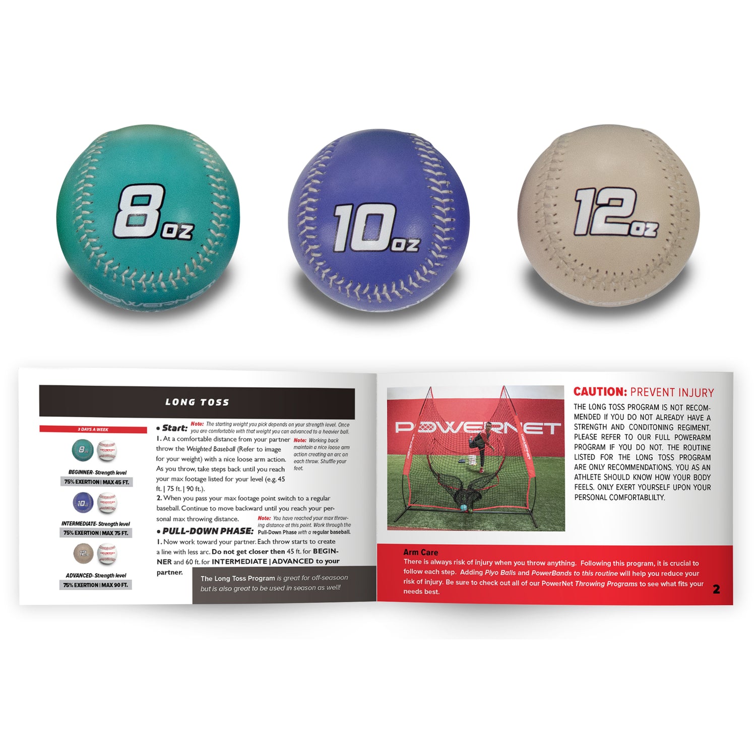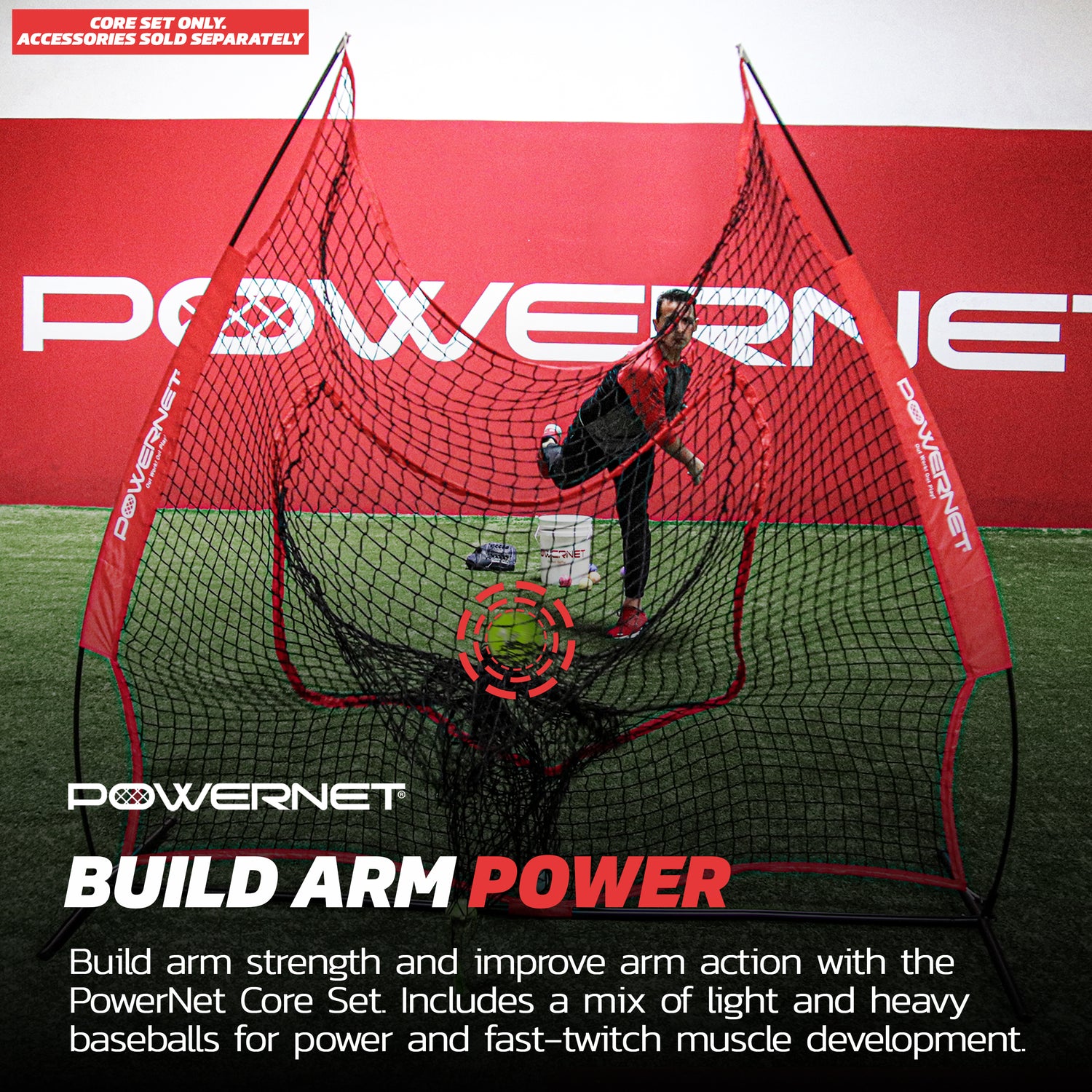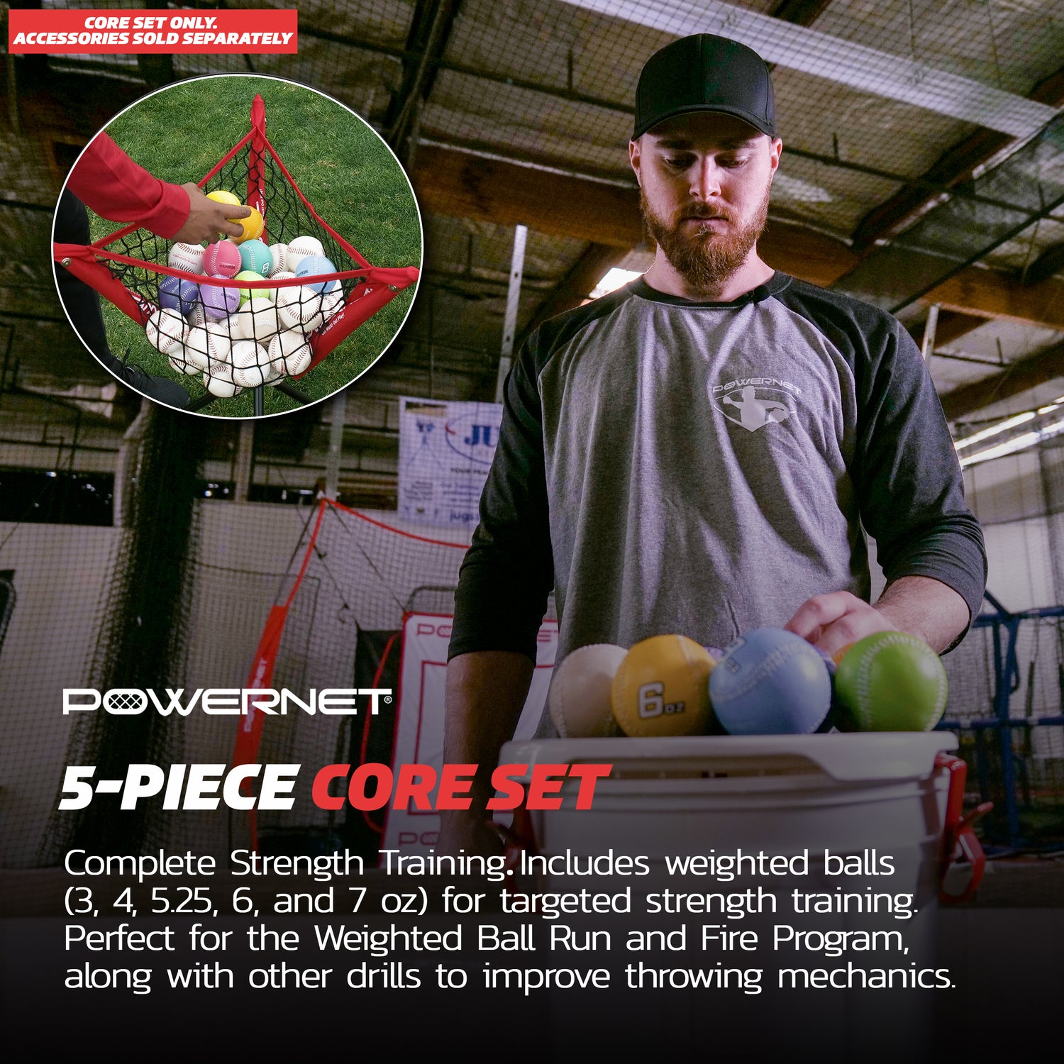- CORE SET / LONG TOSS SET: The PowerNet Core Set offers a mix of light and heavy training balls. The heavier baseballs help build arm strength and create better arm action while the lighter baseballs help build fast twitch muscles