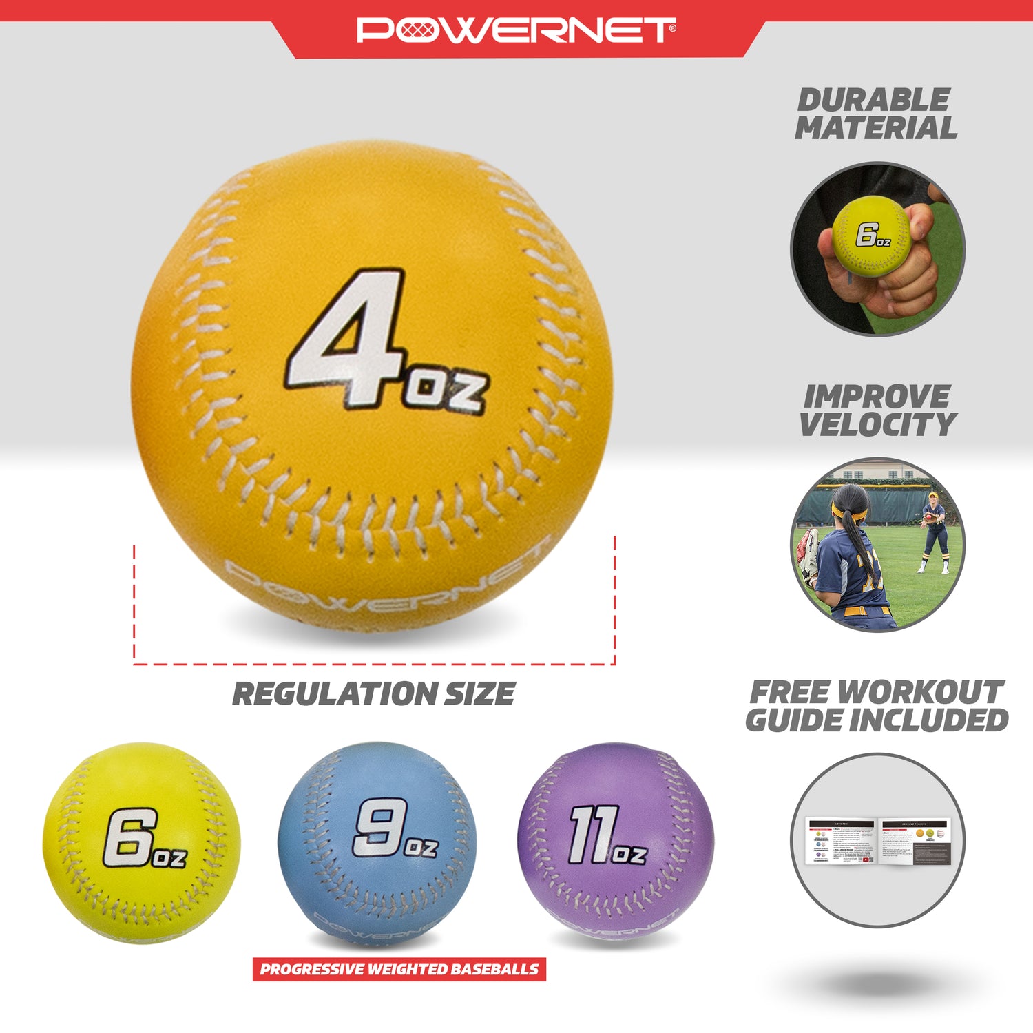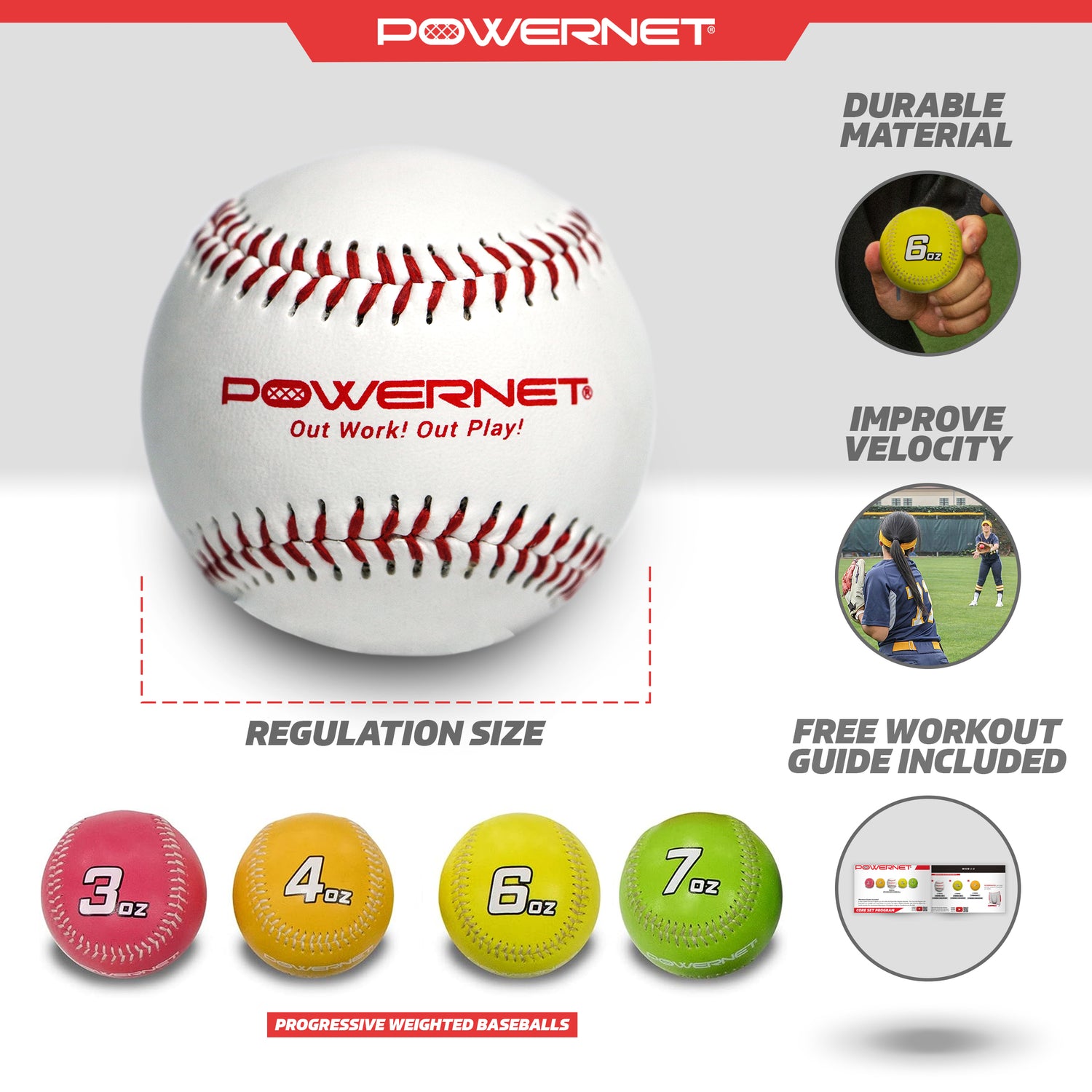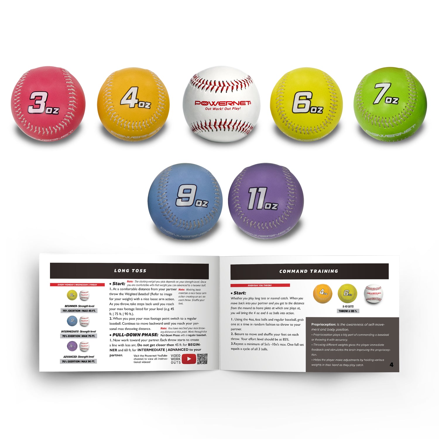 - CORE SET / LONG TOSS SET: The PowerNet Core Set offers a mix of light and heavy training balls. The heavier baseballs help build arm strength and create better arm action while the lighter baseballs help build fast twitch muscles