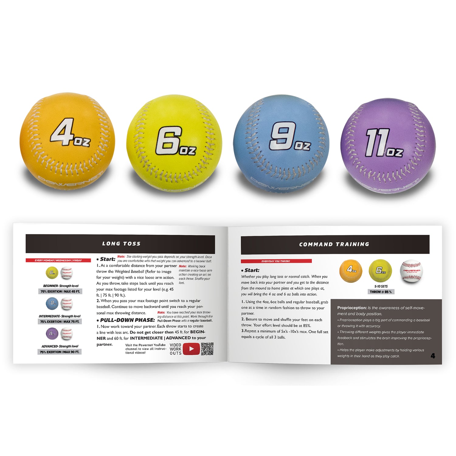 - 5 PIECE SET: The Core Set includes weighted balls in 3, 4, 5.25, 6, and 7-ounce sizes. These balls are perfect for completing the included Weighted Ball Run and Fire Program, as well as a variety of other training drills to improve strength and throwing mechanics.